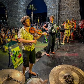 A truly inspiring bunch of talented musicians from all over, spreading such utopian feelings of togetherness beyond any borders. A palpable current of excitement of being alive, expressed through infectious grooves and deeply moving songs and melodies. One of my personal highlights was playing for Matija´s granny in the old folks home - what a grateful audience ... as well as playing for the immigrants in Trieste and the prisoners in Koper ... learning and sharing a heartbreaking song (to say the least) with an amazing bunch of singers from Ukraine... this really makes sense.