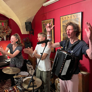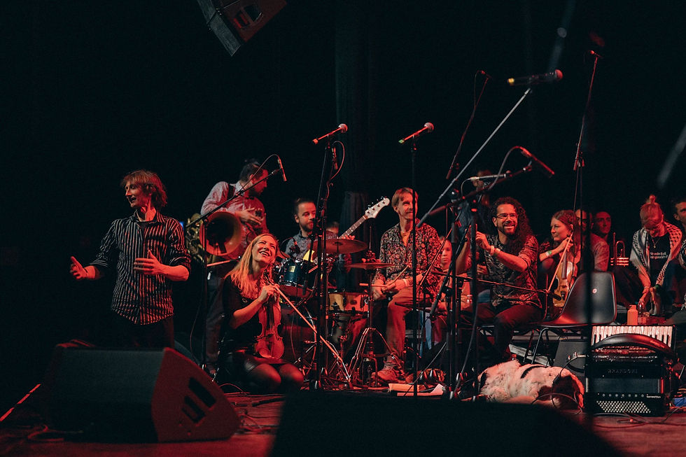 Of course, this wasn´t even all, not by a long shot - I caught many more amazing shows, such as Teatro Matita´s provocative new show "U! Bu?", or violinist/pianist/composer Gaja Suselj´s virtuosic escapades with various musicians, such as Aleš Zorec (drums) and Toby Kuhn (cello). I danced my soul out to our Czech friends´balkan party bands Tygroo and my favourite Mušnica, to french drummer/composer/singer/clarinetist Pierre Manegeard´s funky afro-beat solo show; jumped as high as I could and a bit above to Czech hip hoppers "Pašt". Not to forget a most emotional last couple of nights of jam sessions ... Epic moments like a duet of Serbian pianist Milos Kunc and clarinetist Matej Heinzl or singers Laura Krajnc and Klemen Kuhar that kept happening in different corners of the club all night long keep coming back to me in form of surreal flashbulb memories ...